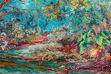 Art Quilt Elements 2026 will be on display in the Davenport, Ethel Sergeant Clark Smith and Vidinghoff Lobby Galleries of Wayne Art Center in Wayne, Pennsylvania from March 23 through April 25, 2026.