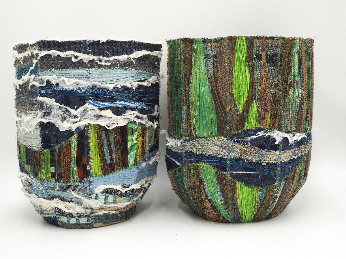 I am inspired by the streams and rivers in Central Pennsylvania that feed into Chesapeake Bay and the farmlands that surround them. Reusing textiles discarded by designers and decorators, I create with small bits of ephemeral fabrics from sample books & leftover scraps from other work. Once used, I cannot replace them. Textile production is a resource-intensive industry: The more I keep out of the landfills the more at peace I feel with my chosen medium.